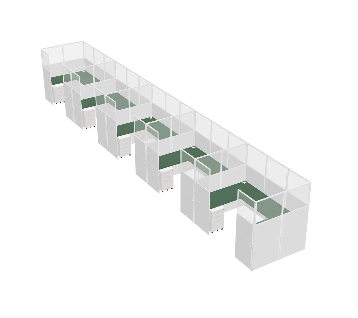 Système De Panneaux En U Vert Pour 5 Personnes + Tiroirs Mobiles En Métal Pour 5 Utilisateur(s)