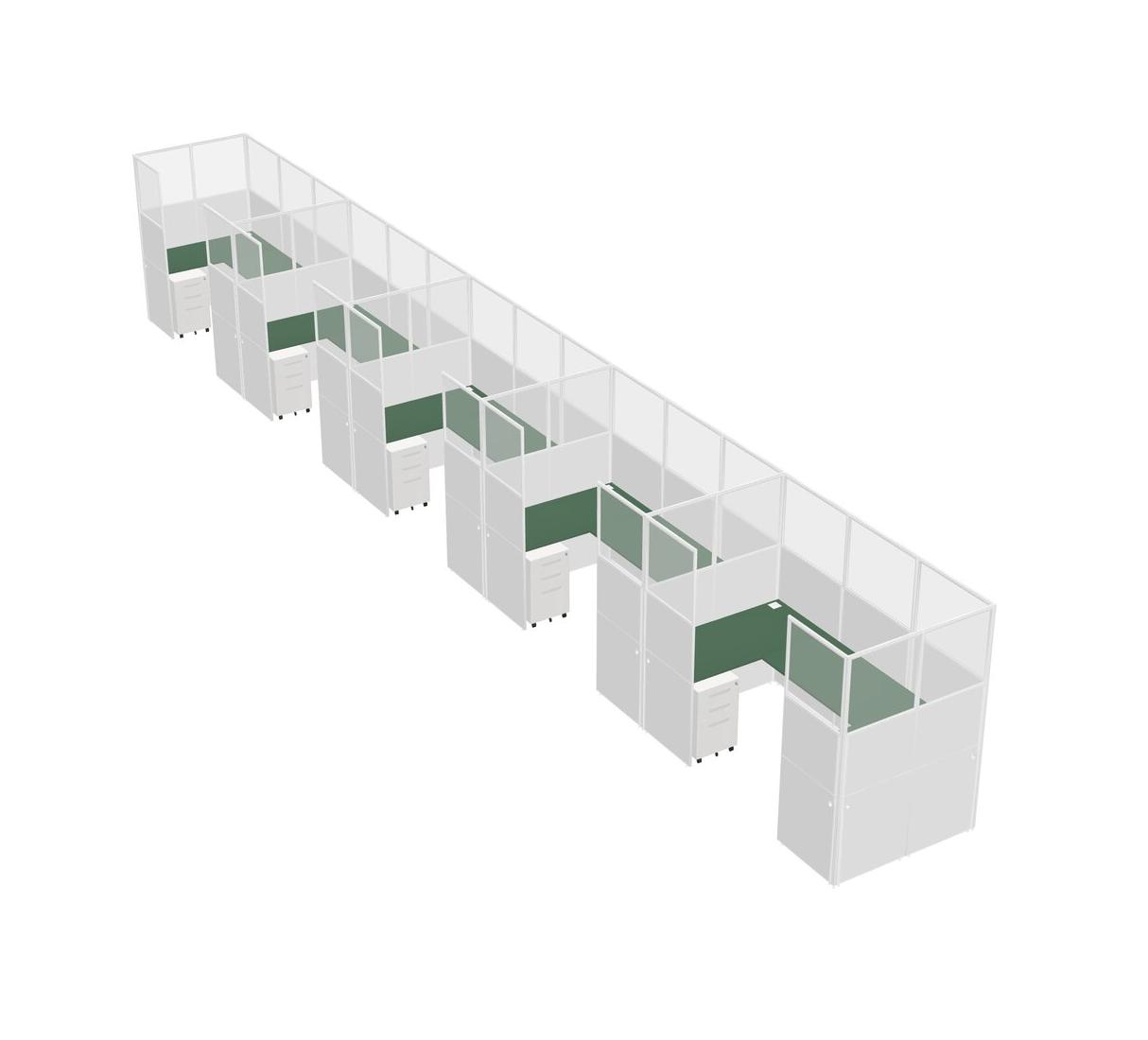 Système De Panneaux En U Vert Pour 5 Personnes + Tiroirs Mobiles En Métal Pour 5 Utilisateur(s)
