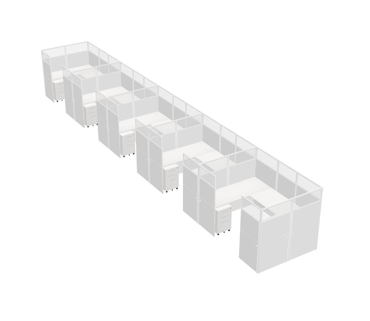 Système De Panneaux En U Blancs Pour 5 Personnes + Tiroirs Mobiles En Métal Pour 5 Utilisateur(s)