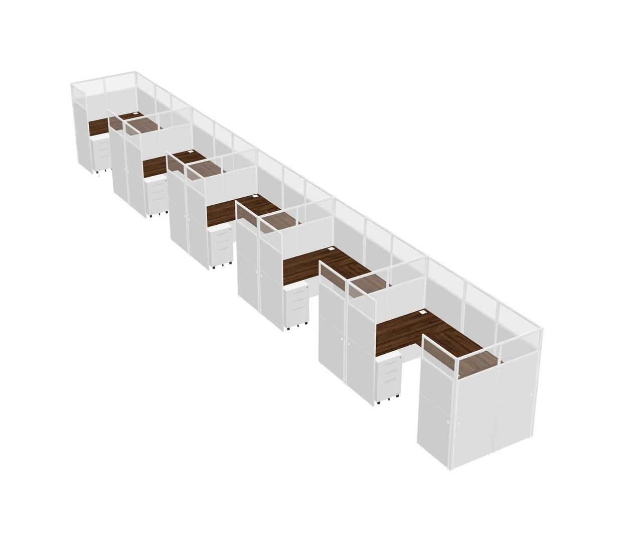 Système De Panneaux En U En Noyer Columbia Pour 5 Personnes + Tiroirs Mobiles En Métal Pour 5 Utilisateur(s)