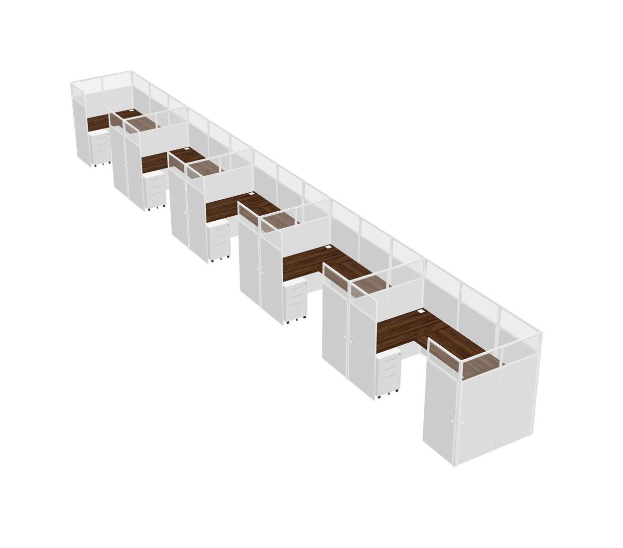 Système De Panneaux En U En Noyer Columbia Pour 5 Personnes + Tiroirs Mobiles En Métal Pour 5 Utilisateur(s)
