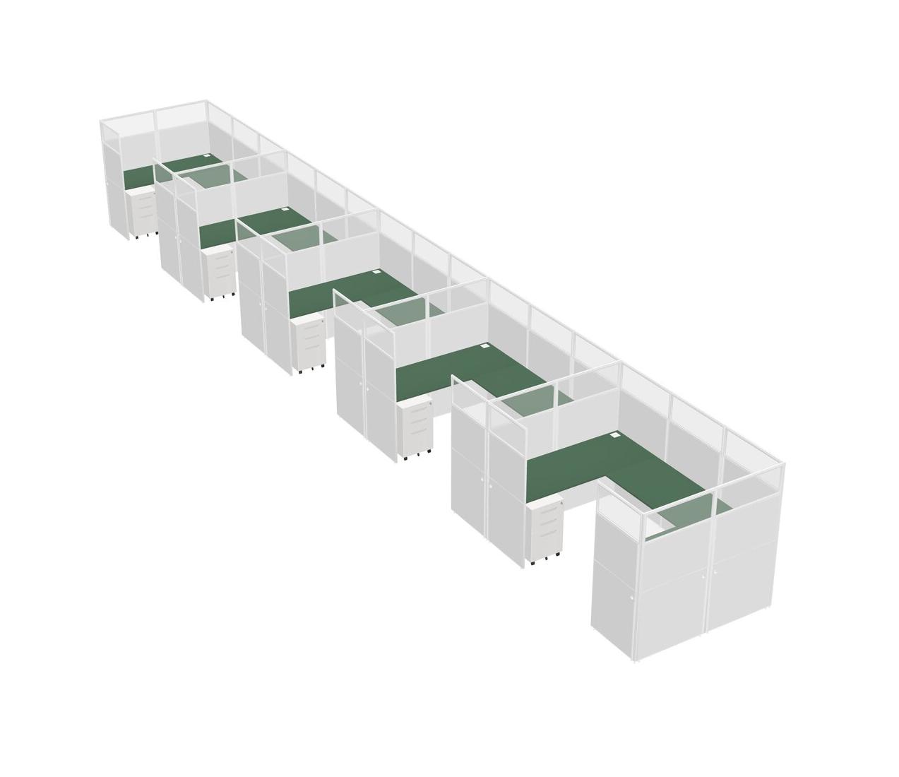 Système De Panneaux En U Vert Pour 5 Personnes + Tiroirs Mobiles En Métal Pour 5 Utilisateur(s)