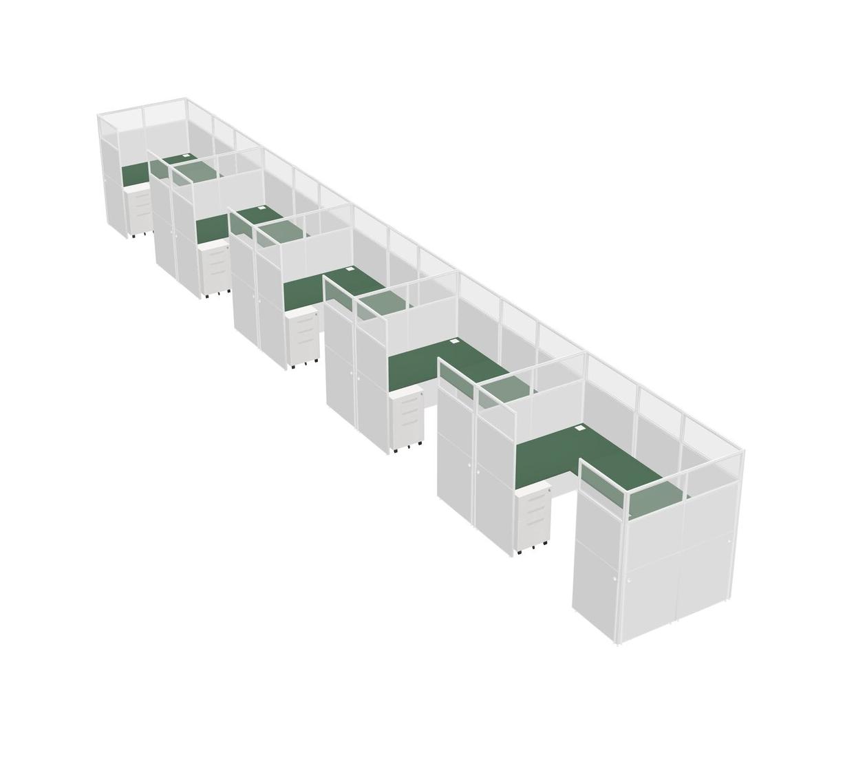 Système De Panneaux En U Vert Pour 5 Personnes + Tiroirs Mobiles En Métal Pour 5 Utilisateur(s)