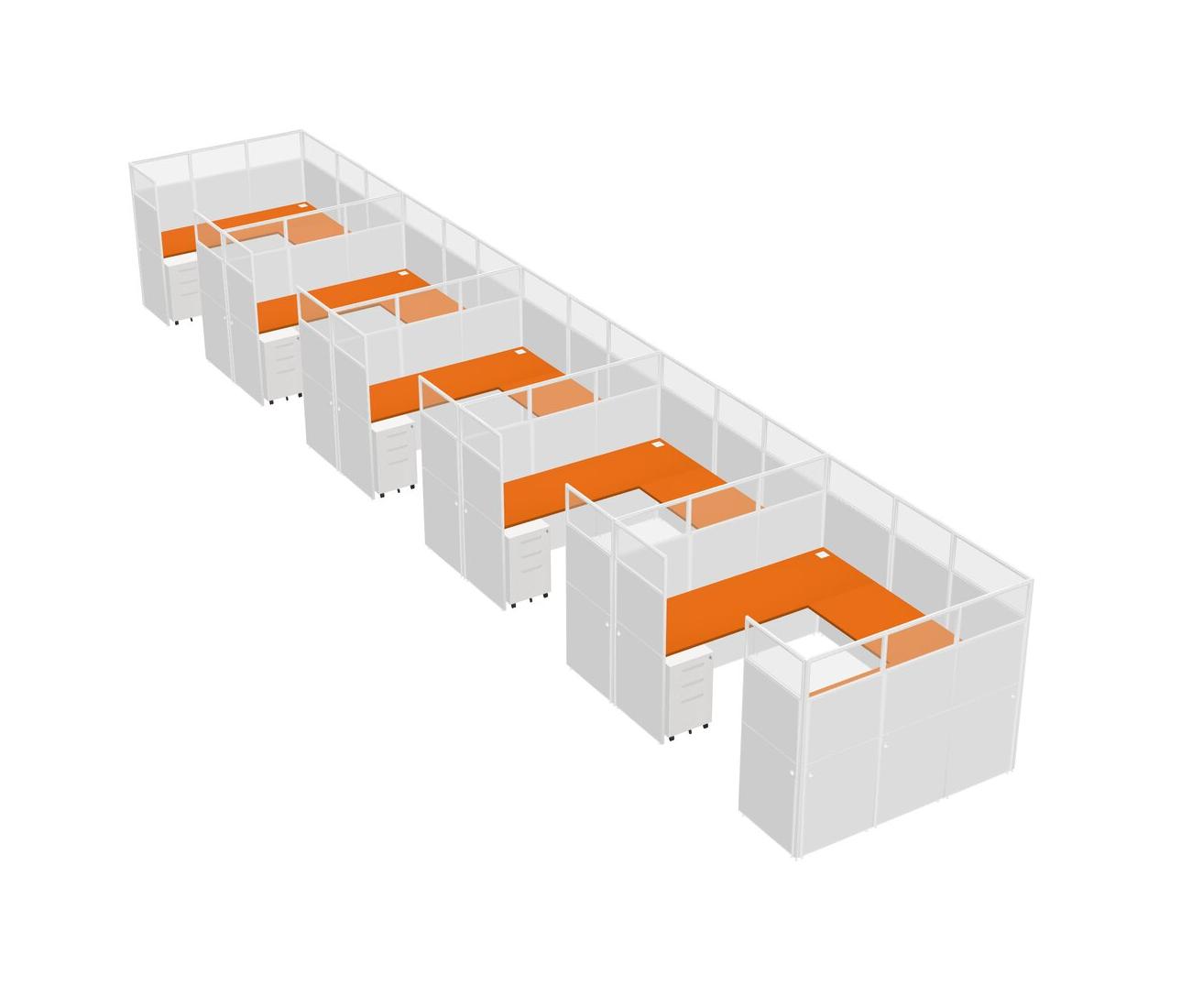 Système De Panneaux En U Orange Pour 5 Personnes + Tiroirs Mobiles En Métal Pour 5 Utilisateur(s)