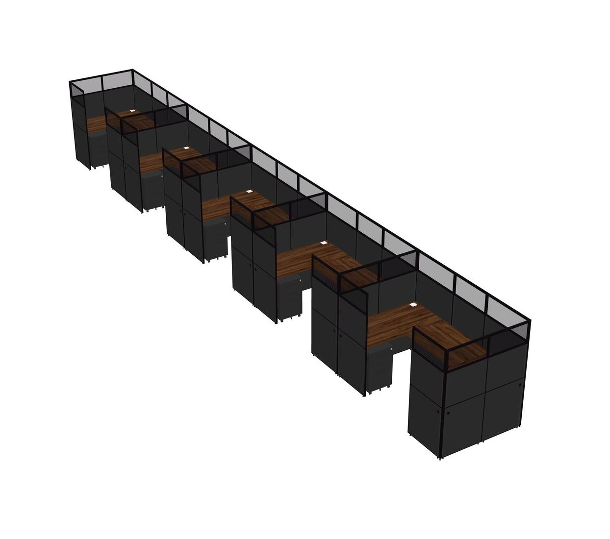 Système De Panneaux En U En Noyer Columbia Pour 5 Personnes + Tiroirs Mobiles En Métal Pour 5 Utilisateur(s)