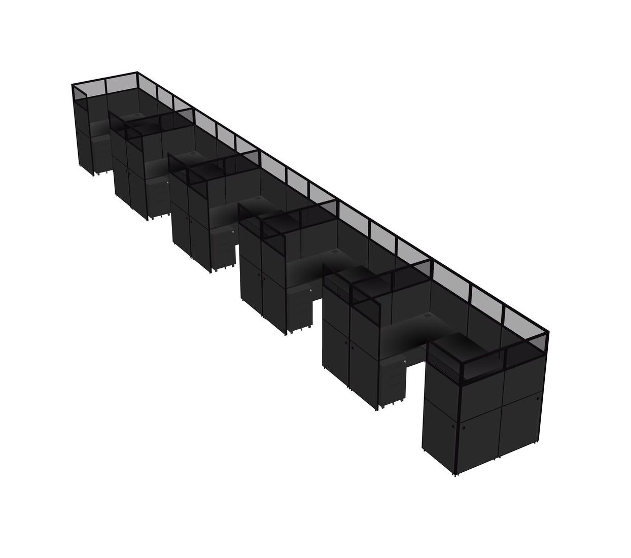 Système De Panneaux En U Noir Pour 5 Personnes + Tiroirs Mobiles En Métal Pour 5 Utilisateur(s)