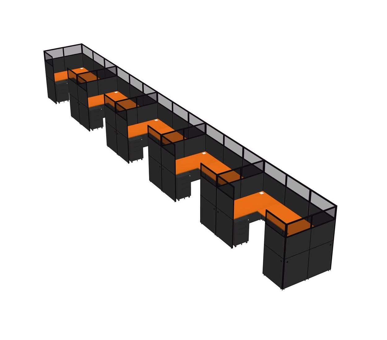 Système De Panneaux En U Orange Pour 5 Personnes + Tiroirs Mobiles En Métal Pour 5 Utilisateur(s)