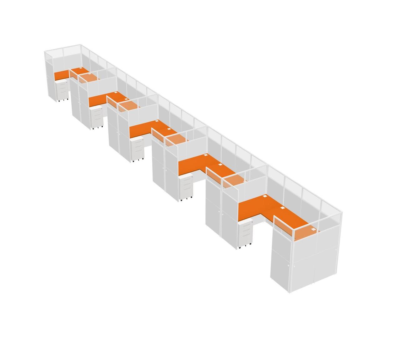 Système De Panneaux En U Orange Pour 5 Personnes + Tiroirs Mobiles En Métal Pour 5 Utilisateur(s)