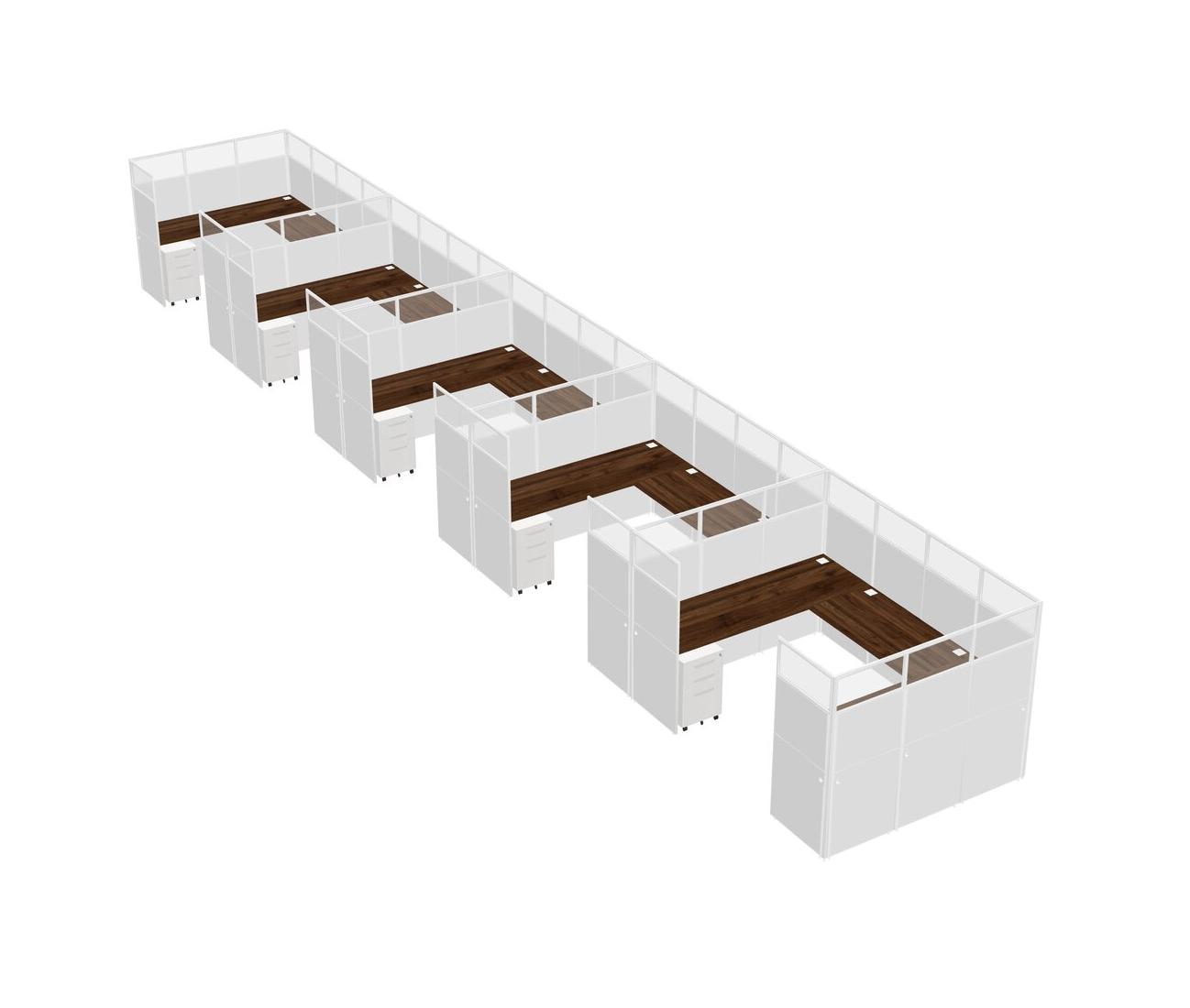 Système De Panneaux En U En Noyer Columbia Pour 5 Personnes + Tiroirs Mobiles En Métal Pour 5 Utilisateur(s)