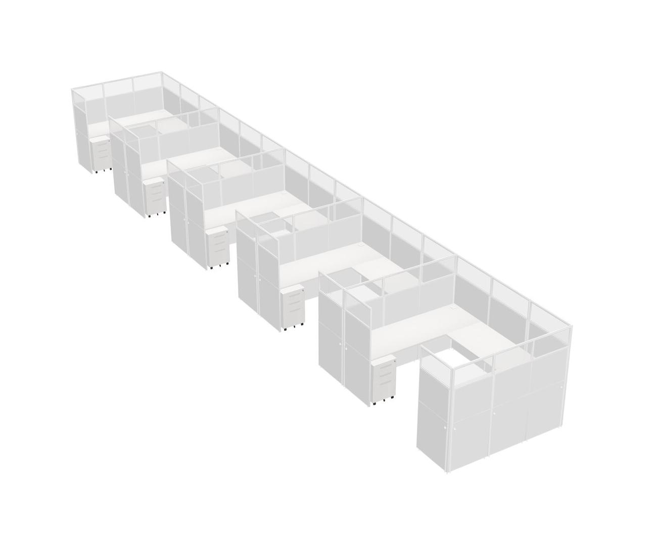Système De Panneaux En U Blancs Pour 5 Personnes + Tiroirs Mobiles En Métal Pour 5 Utilisateur(s)