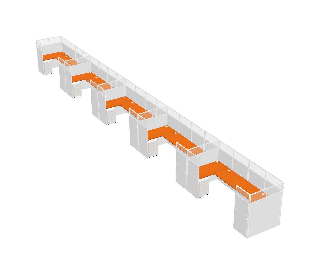 Système De Panneaux En U Orange Pour 5 Personnes + Tiroirs Mobiles En Métal Pour 5 Utilisateur(s)