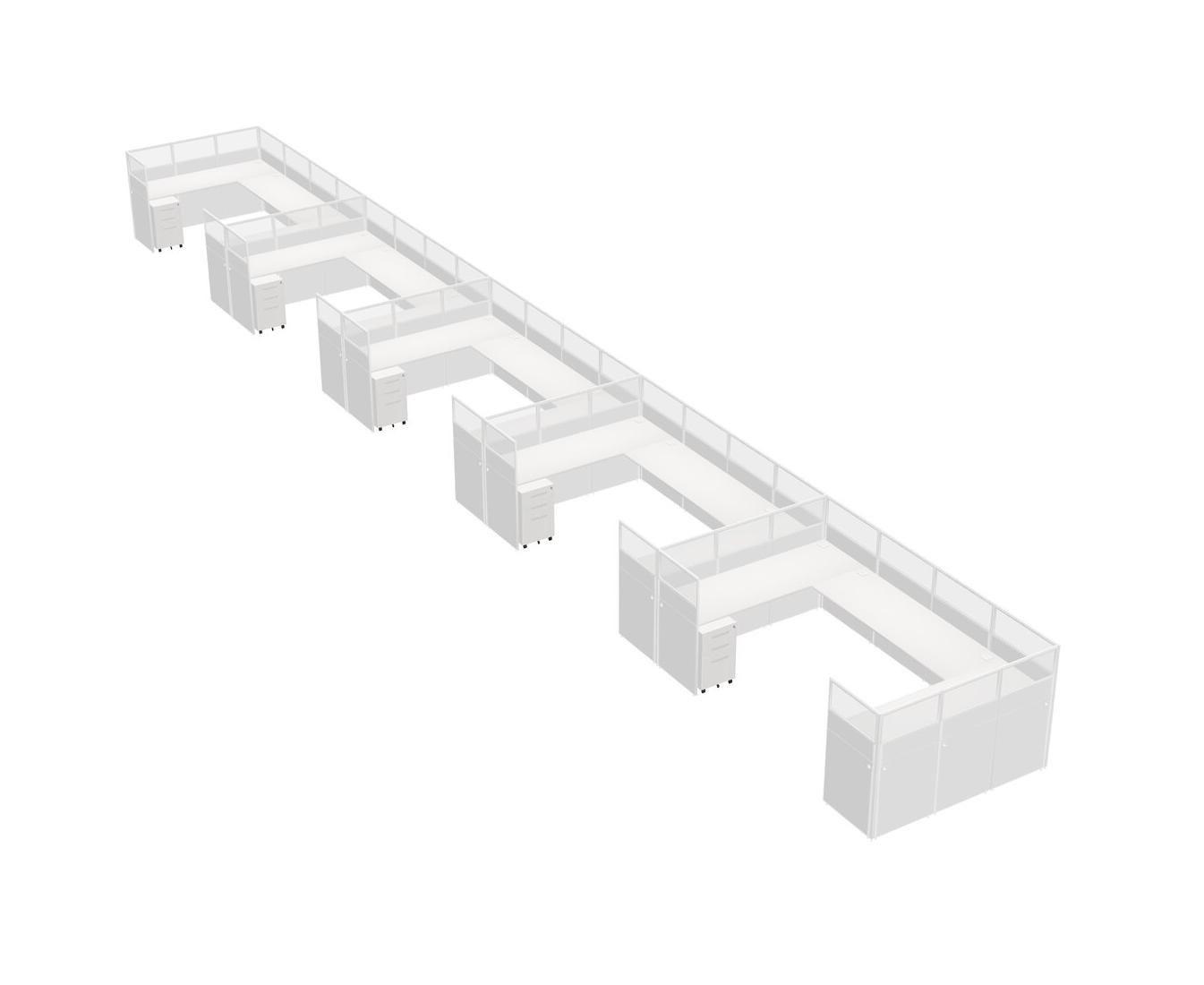Système De Panneaux En U Blancs Pour 5 Personnes + Tiroirs Mobiles En Métal Pour 5 Utilisateur(s)