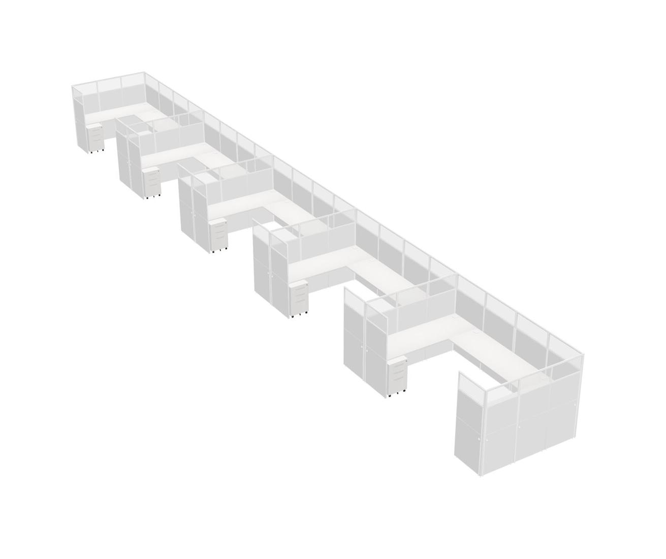 Système De Panneaux En U Blancs Pour 5 Personnes + Tiroirs Mobiles En Métal Pour 5 Utilisateur(s)