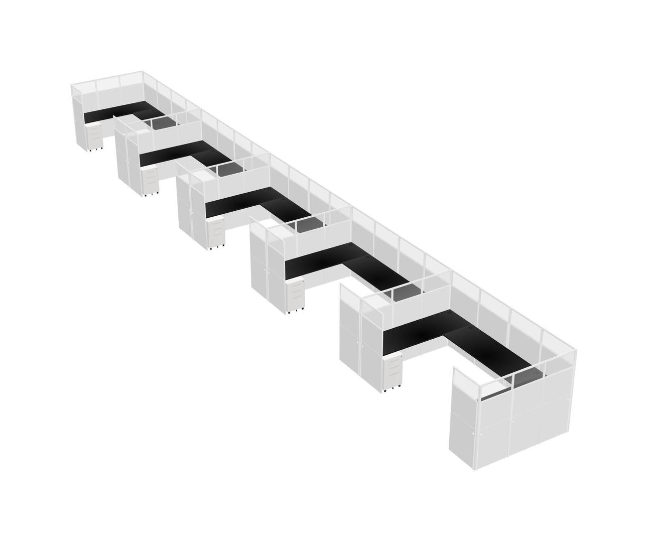 Système De Panneaux En U Noir Pour 5 Personnes + Tiroirs Mobiles En Métal Pour 5 Utilisateur(s)