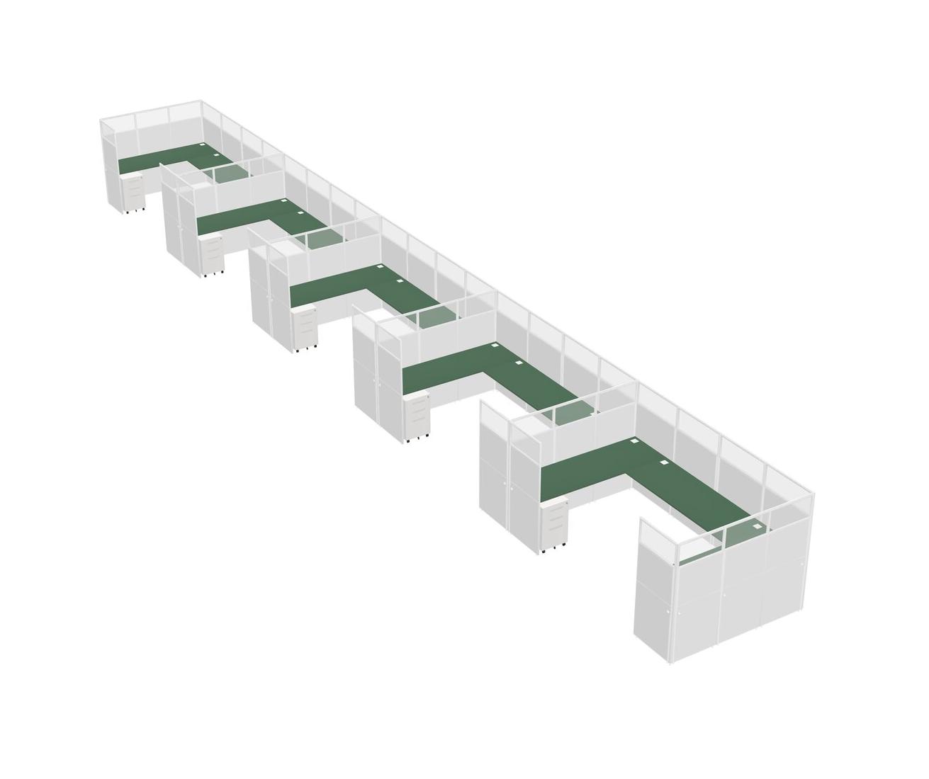 Système De Panneaux En U Vert Pour 5 Personnes + Tiroirs Mobiles En Métal Pour 5 Utilisateur(s)