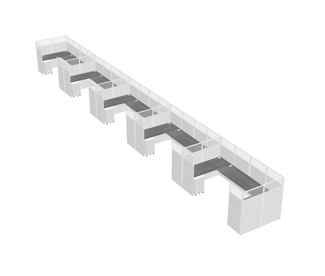 Système De Panneaux En U Gris Pour 5 Personnes + Tiroirs Mobiles En Métal Pour 5 Utilisateur(s)