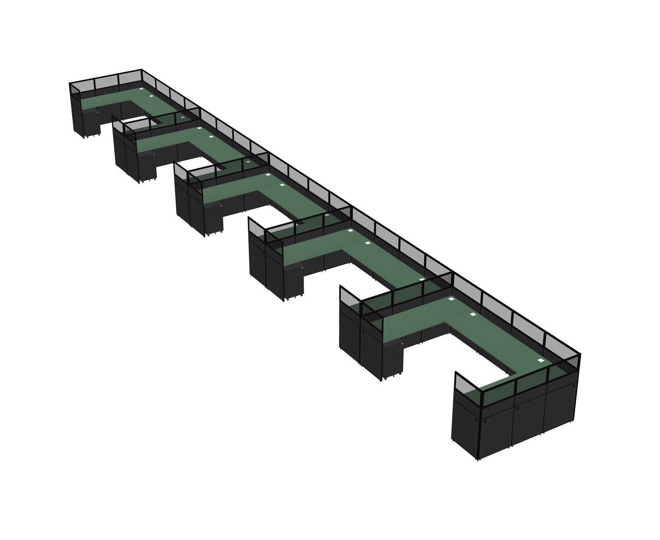 Système De Panneaux En U Vert Pour 5 Personnes + Tiroirs Mobiles En Métal Pour 5 Utilisateur(s)