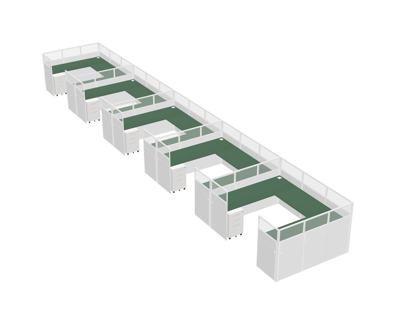 Système De Panneaux En U Vert Pour 5 Personnes + Tiroirs Mobiles En Métal Pour 5 Utilisateur(s)