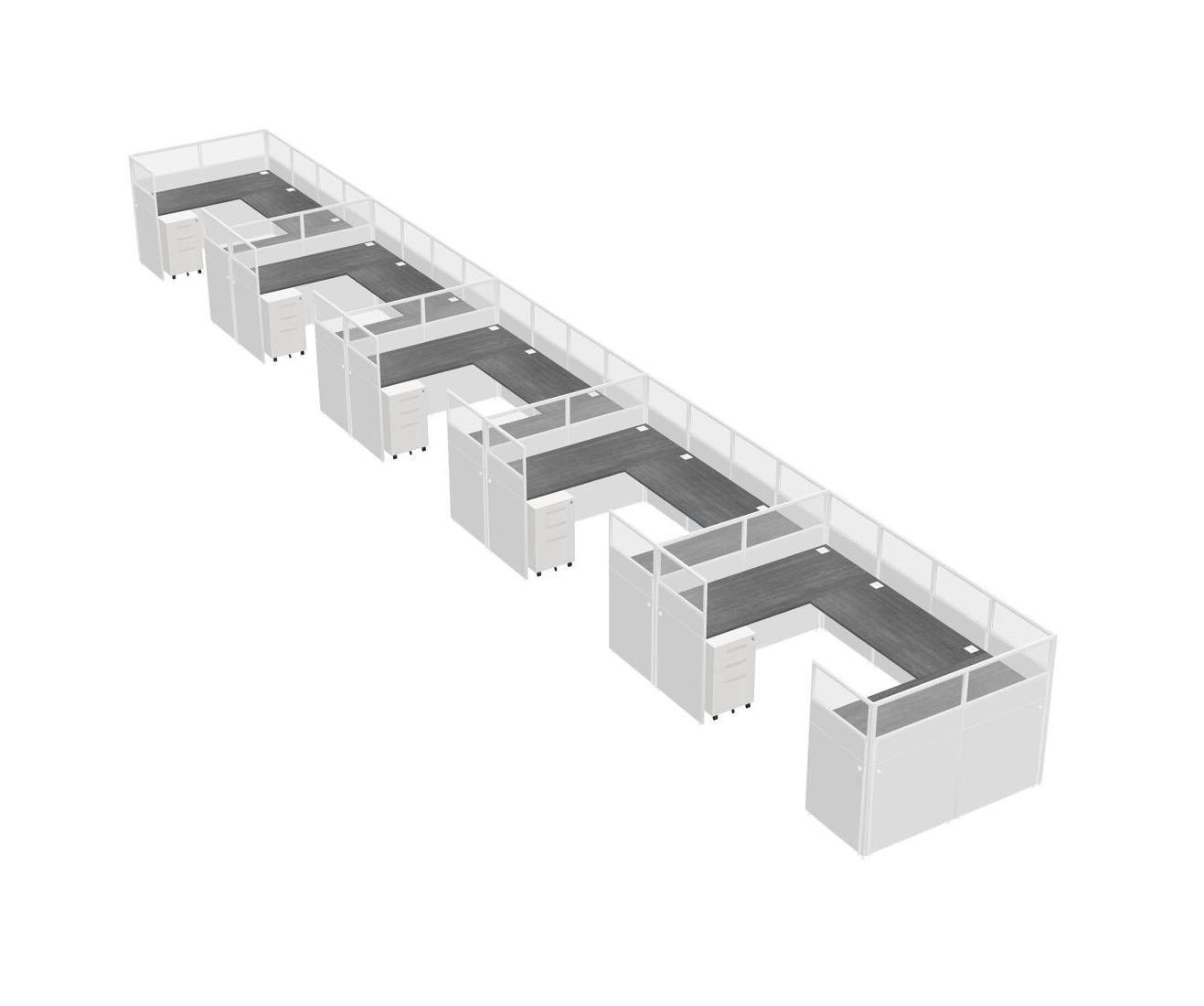 Système De Panneaux En U Gris Pour 5 Personnes + Tiroirs Mobiles En Métal Pour 5 Utilisateur(s)