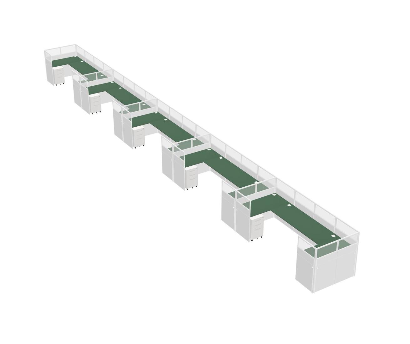 Système De Panneaux En U Vert Pour 5 Personnes + Tiroirs Mobiles En Métal Pour 5 Utilisateur(s)