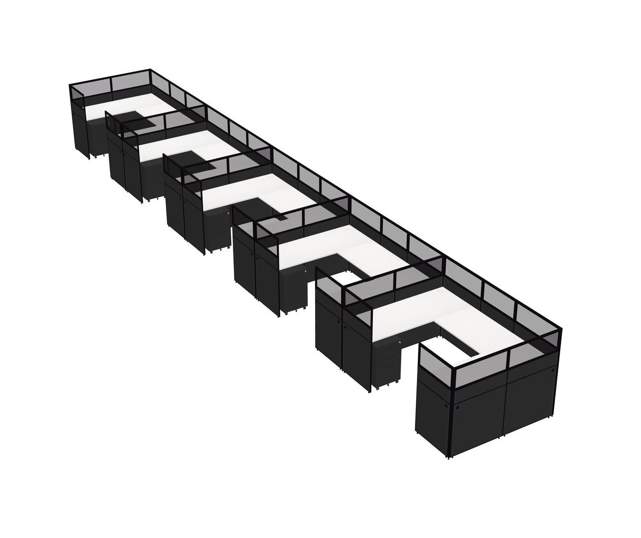 Système De Panneaux En U Blancs Pour 5 Personnes + Tiroirs Mobiles En Métal Pour 5 Utilisateur(s)