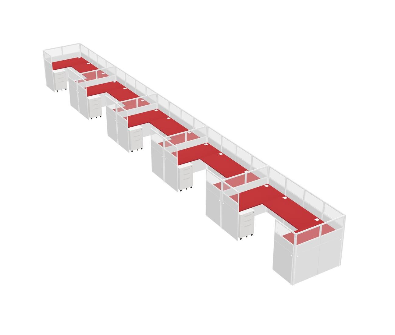 Système De Panneaux En U Prism Red Pour 5 Personnes + Tiroirs Mobiles En Métal Pour 5 Utilisateur(s)