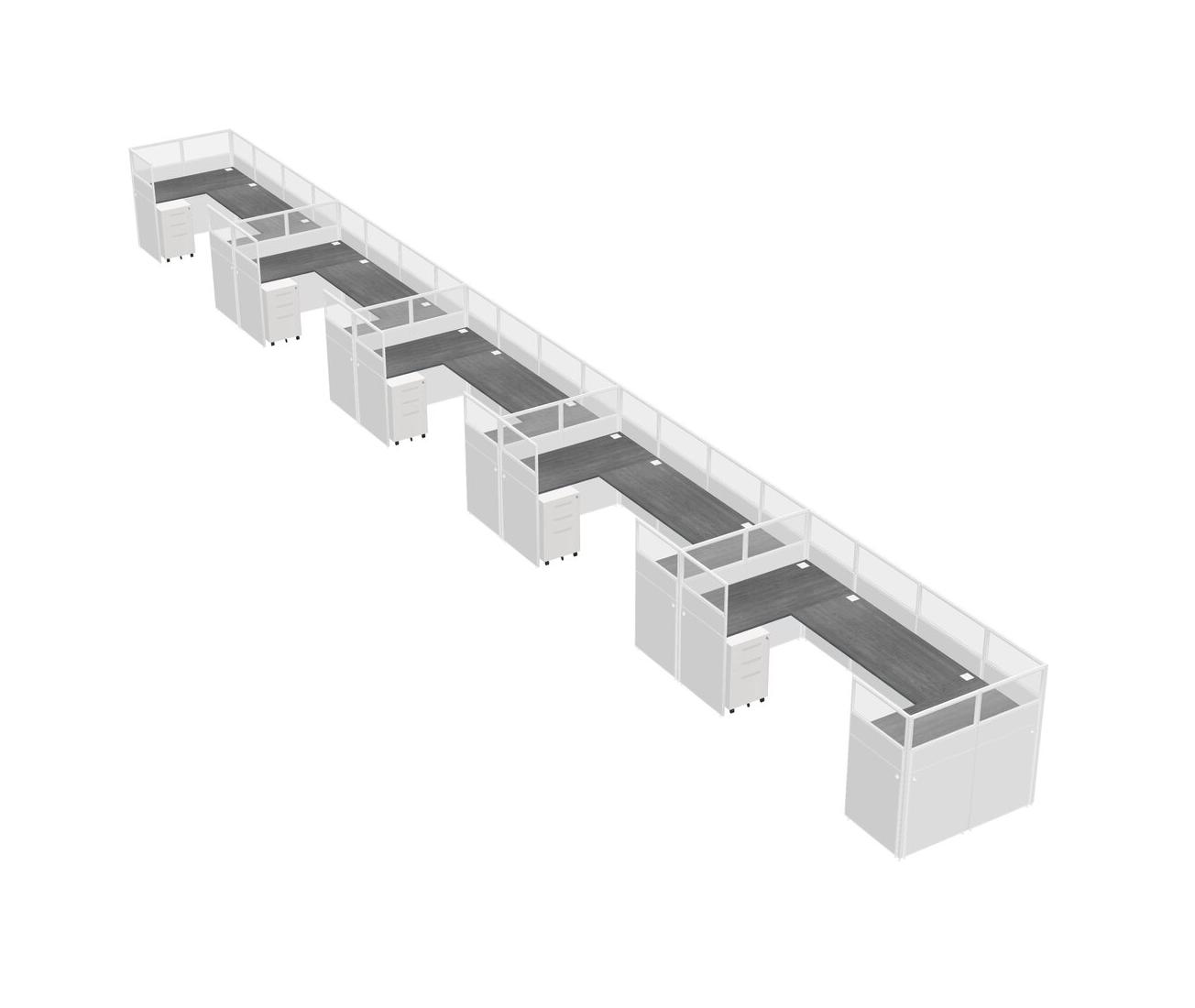 Système De Panneaux En U Gris Pour 5 Personnes + Tiroirs Mobiles En Métal Pour 5 Utilisateur(s)