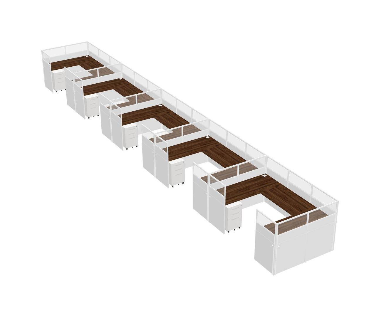 Système De Panneaux En U En Noyer Columbia Pour 5 Personnes + Tiroirs Mobiles En Métal Pour 5 Utilisateur(s)