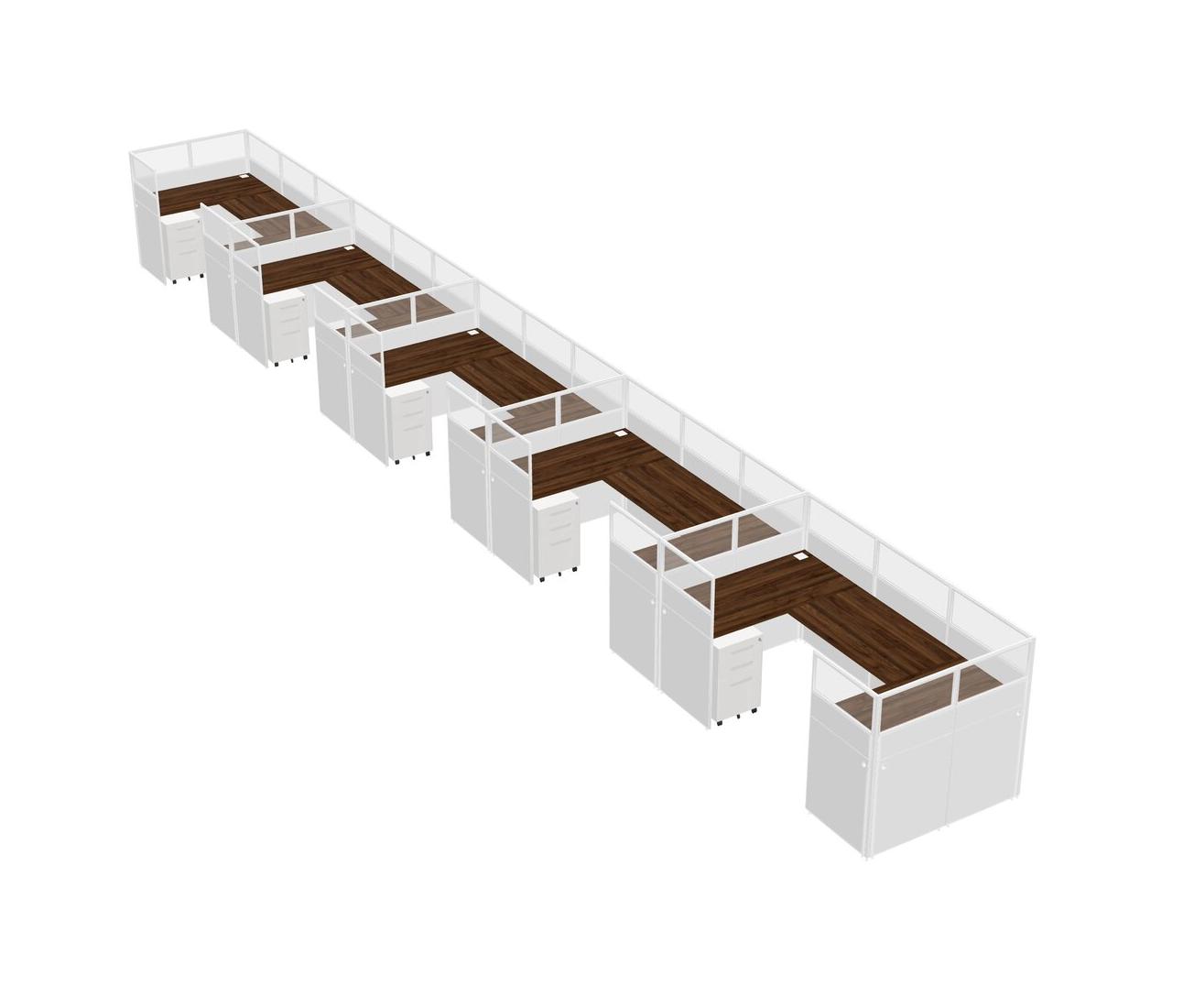 Système De Panneaux En U En Noyer Columbia Pour 5 Personnes + Tiroirs Mobiles En Métal Pour 5 Utilisateur(s)