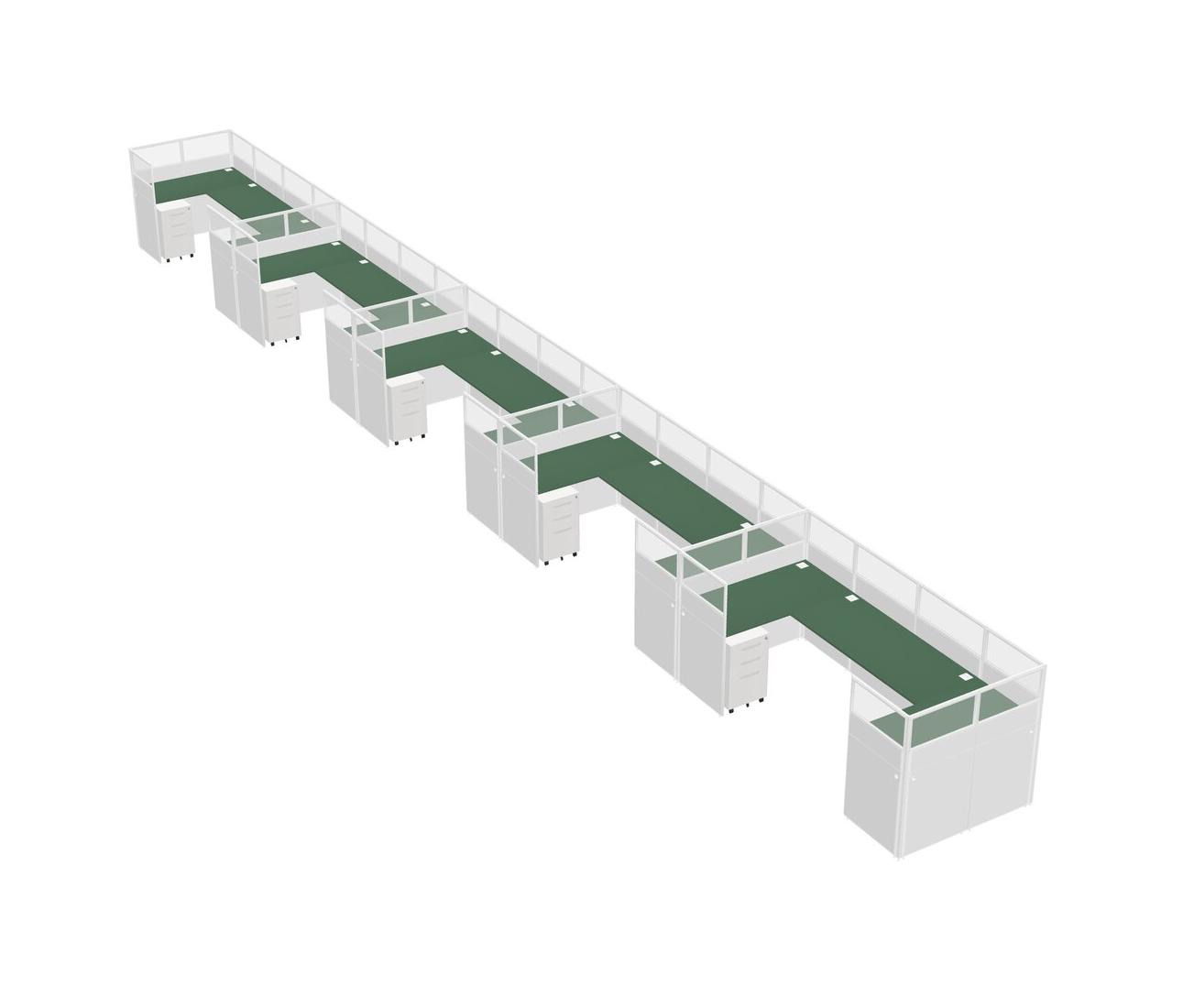 Système De Panneaux En U Vert Pour 5 Personnes + Tiroirs Mobiles En Métal Pour 5 Utilisateur(s)