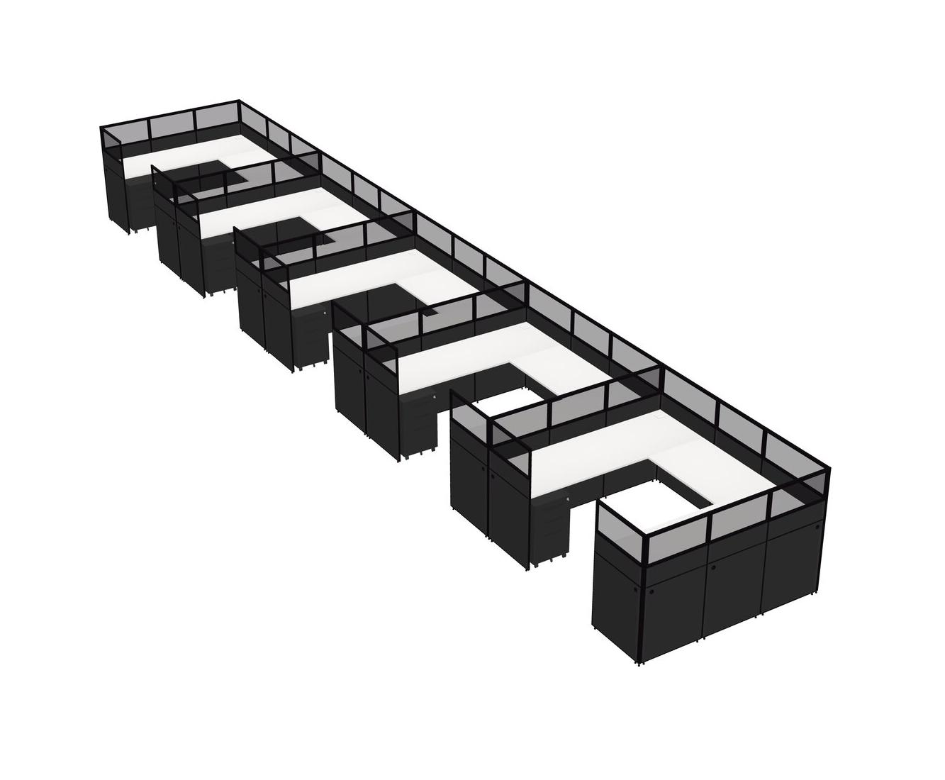 Système De Panneaux En U Blancs Pour 5 Personnes + Tiroirs Mobiles En Métal Pour 5 Utilisateur(s)
