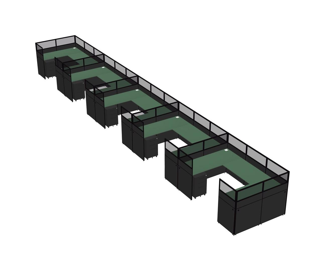 Système De Panneaux En U Vert Pour 5 Personnes + Tiroirs Mobiles En Métal Pour 5 Utilisateur(s)