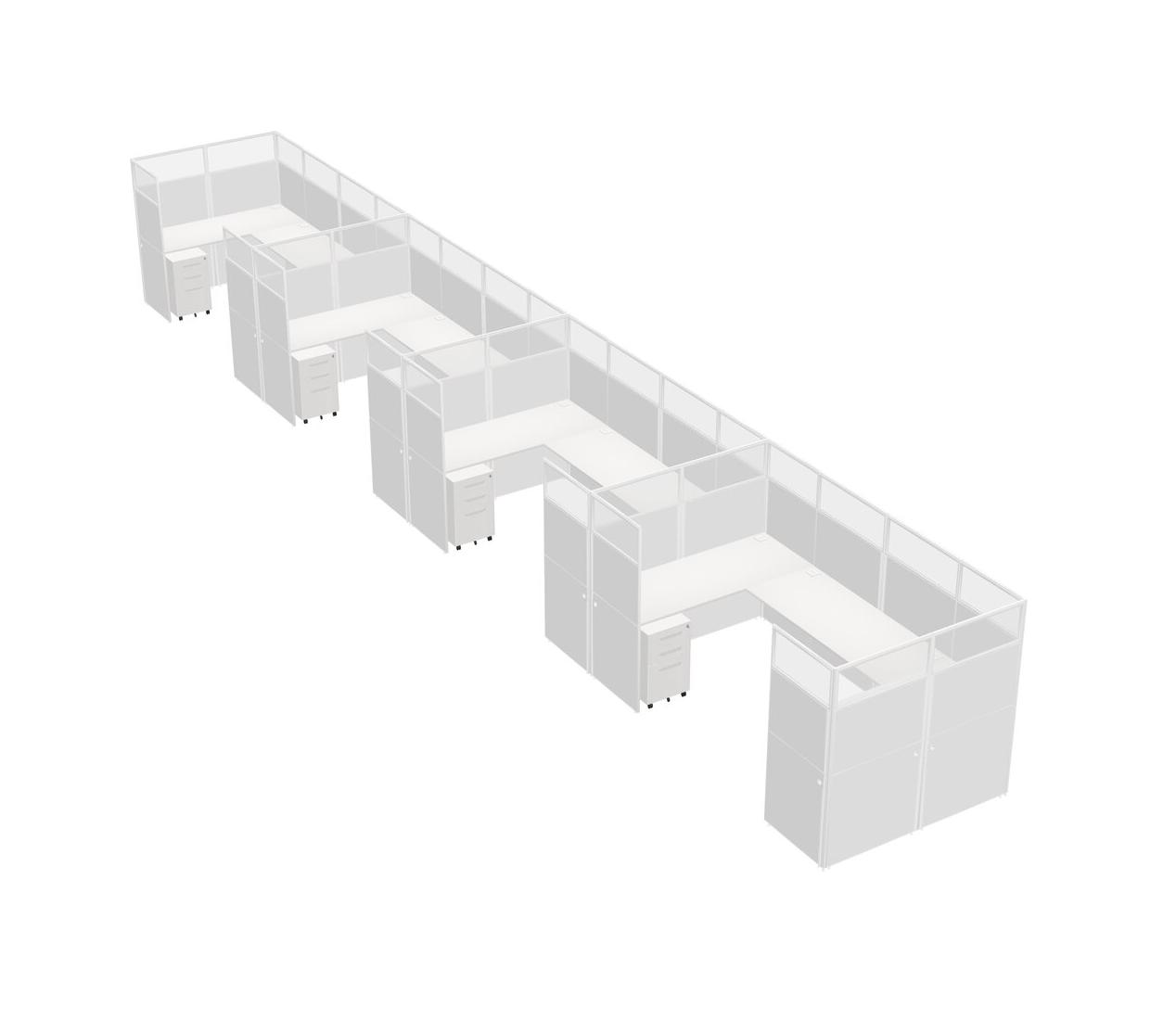 Système De Panneaux En U Blanc Pour 4 Personnes + Tiroirs Mobiles En Métal Pour 4 Utilisateur(s)