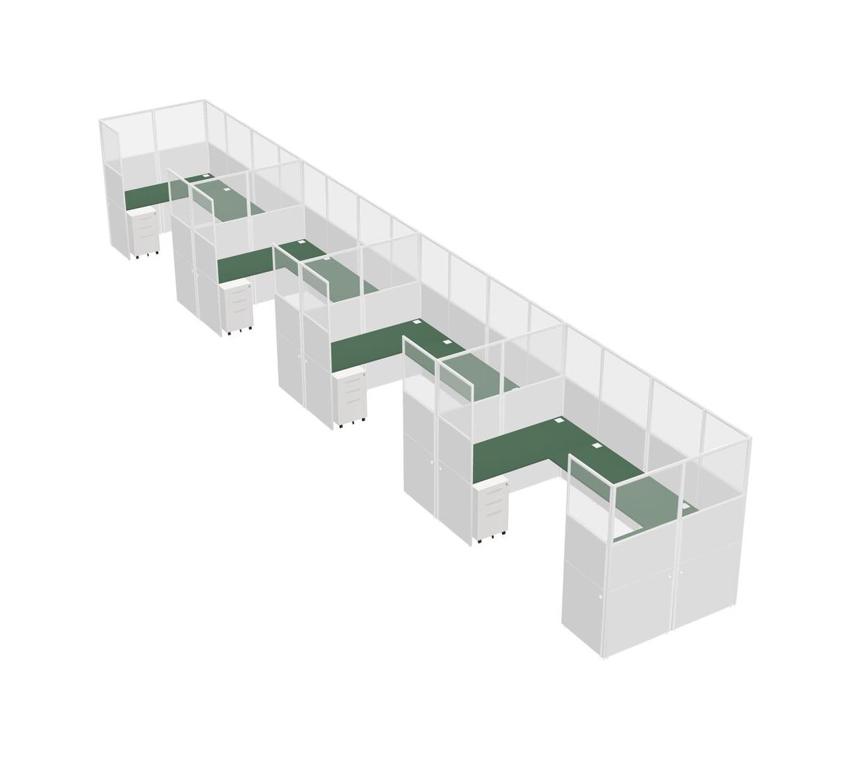 Système De Panneaux En U Vert Pour 4 Personnes + Tiroirs Mobiles En Métal Pour 4 Utilisateur(s)