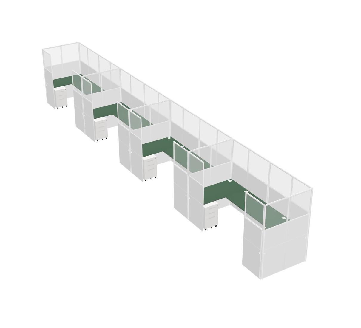 Système De Panneaux En U Vert Pour 4 Personnes + Tiroirs Mobiles En Métal Pour 4 Utilisateur(s)