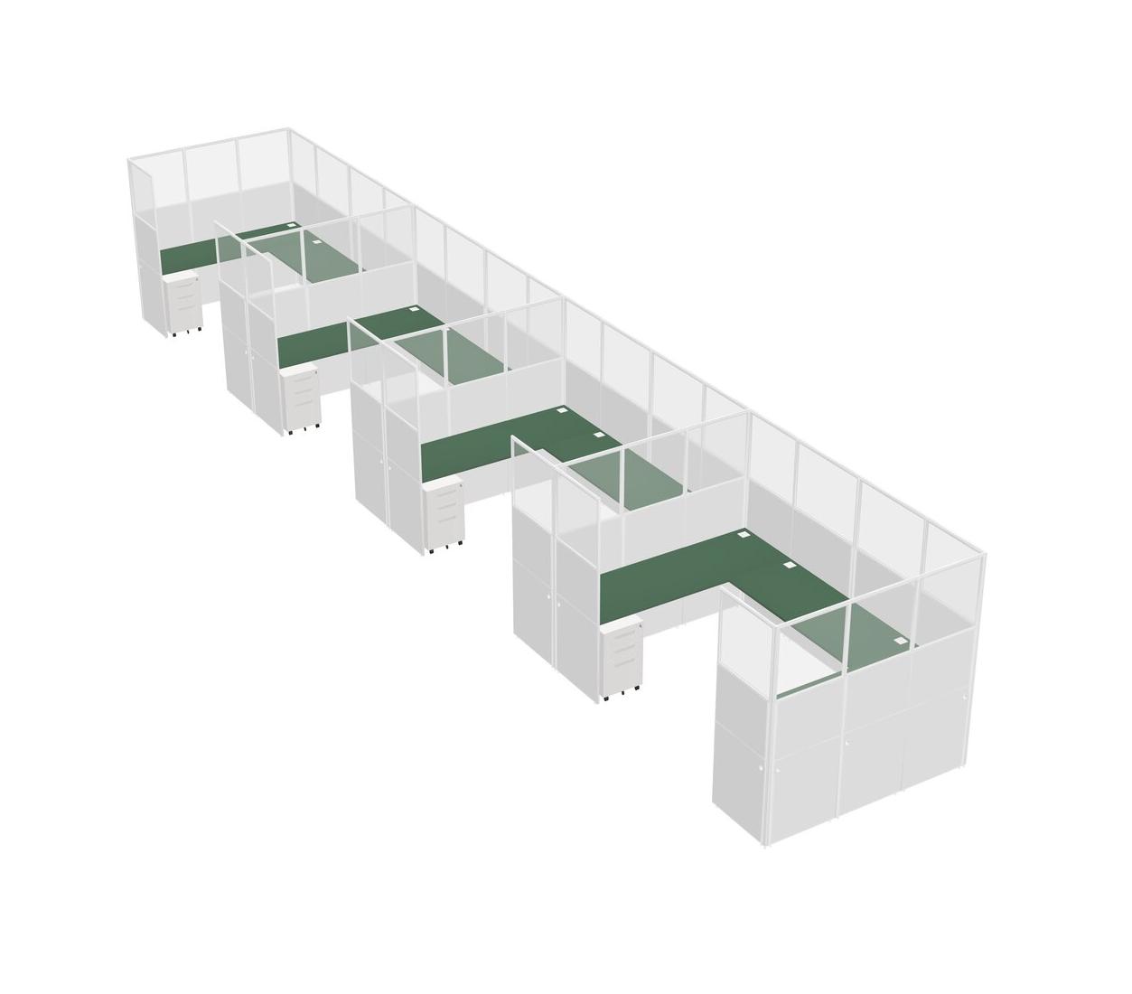 Système De Panneaux En U Vert Pour 4 Personnes + Tiroirs Mobiles En Métal Pour 4 Utilisateur(s)