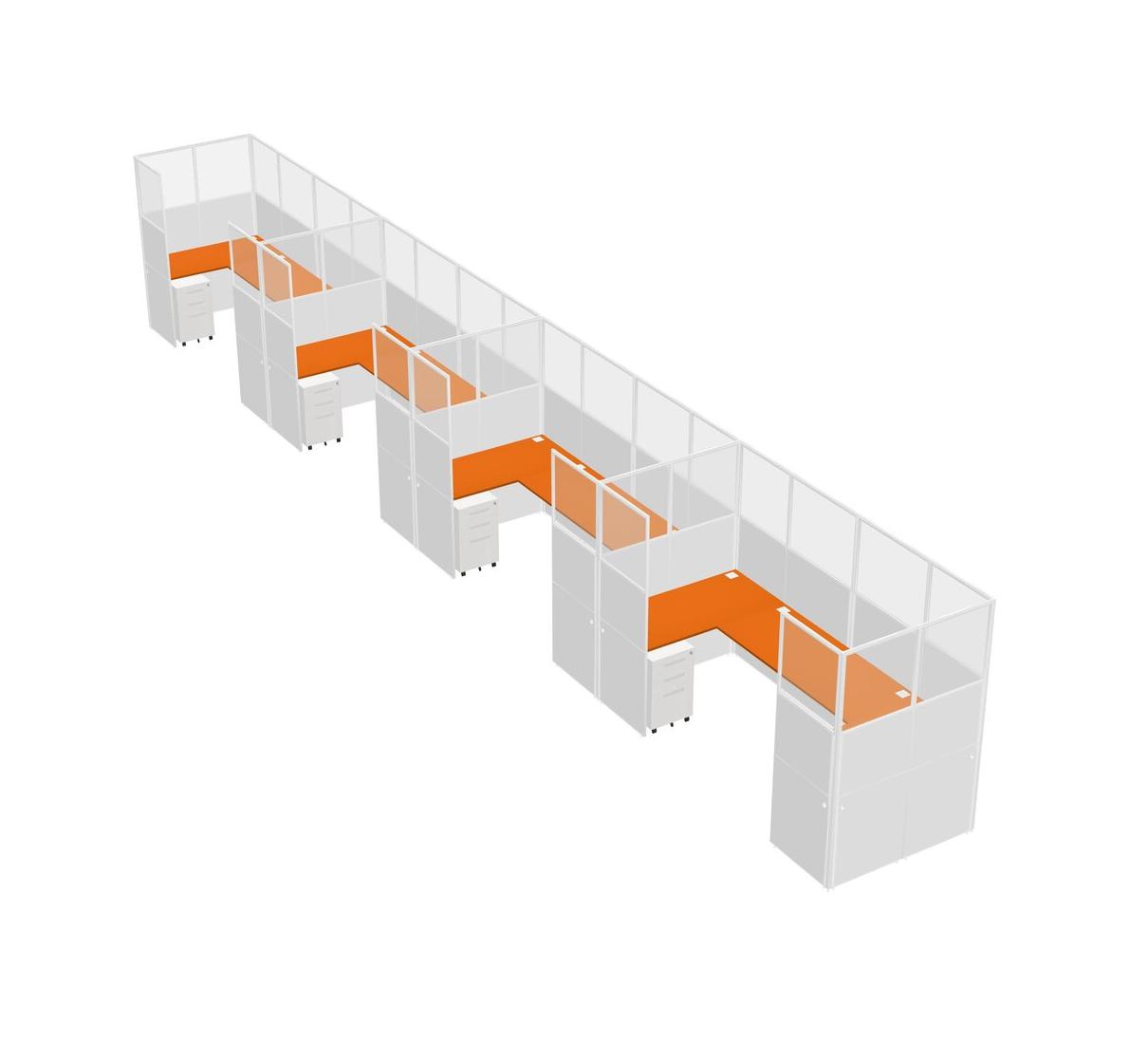 Système De Panneaux En U Orange Pour 4 Personnes + Tiroirs Mobiles En Métal Pour 4 Utilisateur(s)