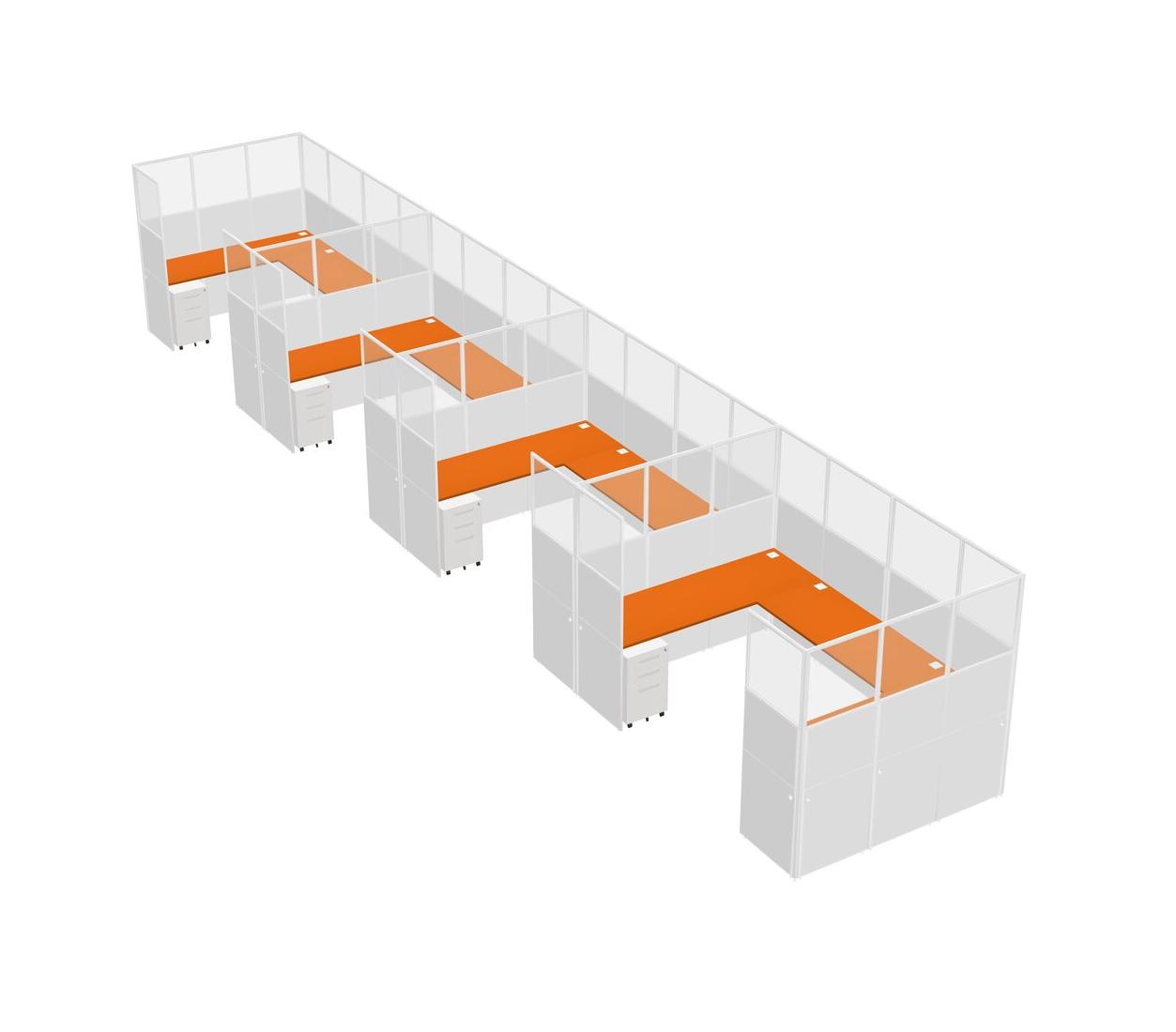 Système De Panneaux En U Orange Pour 4 Personnes + Tiroirs Mobiles En Métal Pour 4 Utilisateur(s)