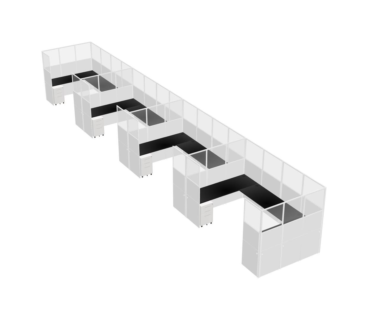 Système De Panneaux En U Noir Pour 4 Personnes + Tiroirs Mobiles En Métal Pour 4 Utilisateur(s)