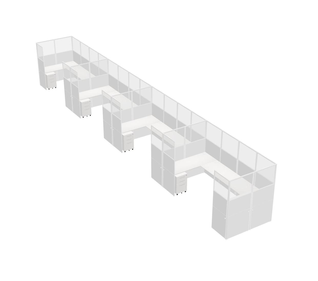 Système De Panneaux En U Blanc Pour 4 Personnes + Tiroirs Mobiles En Métal Pour 4 Utilisateur(s)