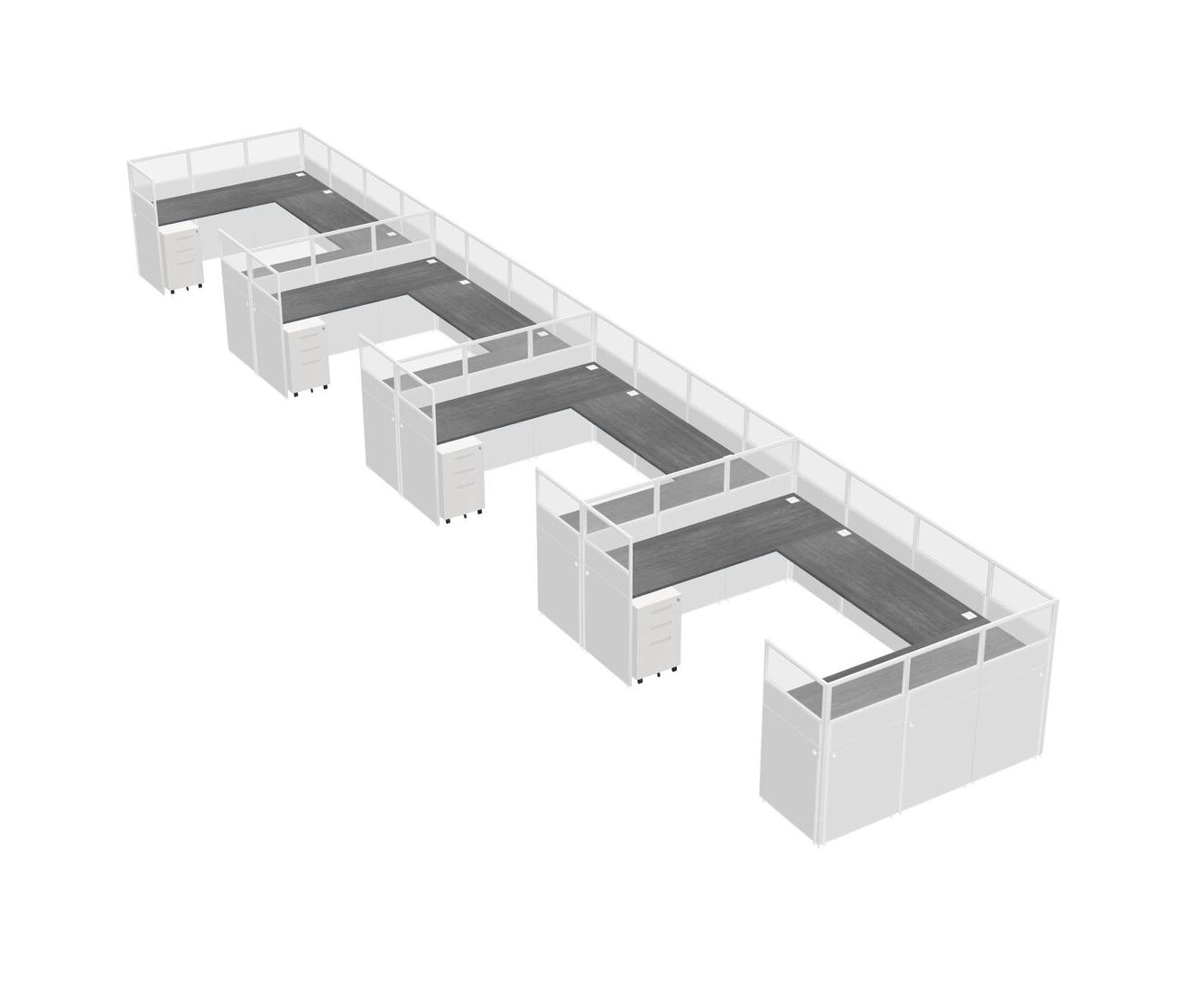 Système De Panneaux En U Gris Pour 4 Personnes + Tiroirs Mobiles En Métal Pour 4 Utilisateur(s)