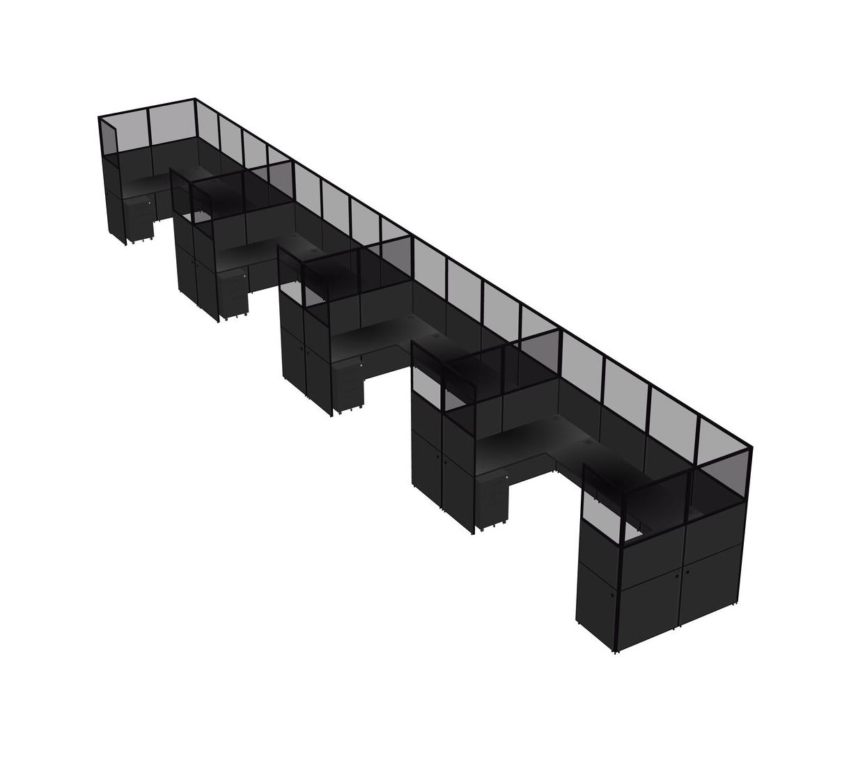 Système De Panneaux En U Noir Pour 4 Personnes + Tiroirs Mobiles En Métal Pour 4 Utilisateur(s)