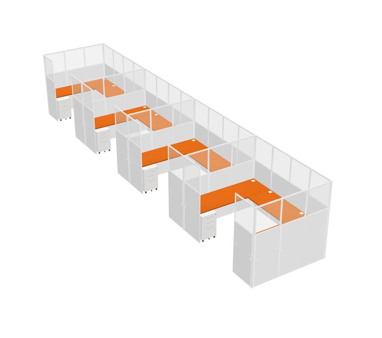 Système De Panneaux En U Orange Pour 4 Personnes + Tiroirs Mobiles En Métal Pour 4 Utilisateur(s)
