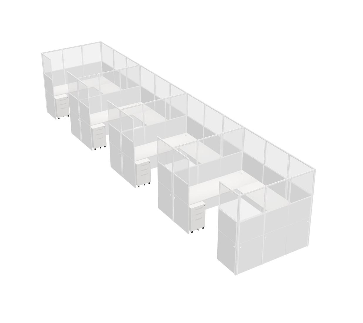 Système De Panneaux En U Blanc Pour 4 Personnes + Tiroirs Mobiles En Métal Pour 4 Utilisateur(s)