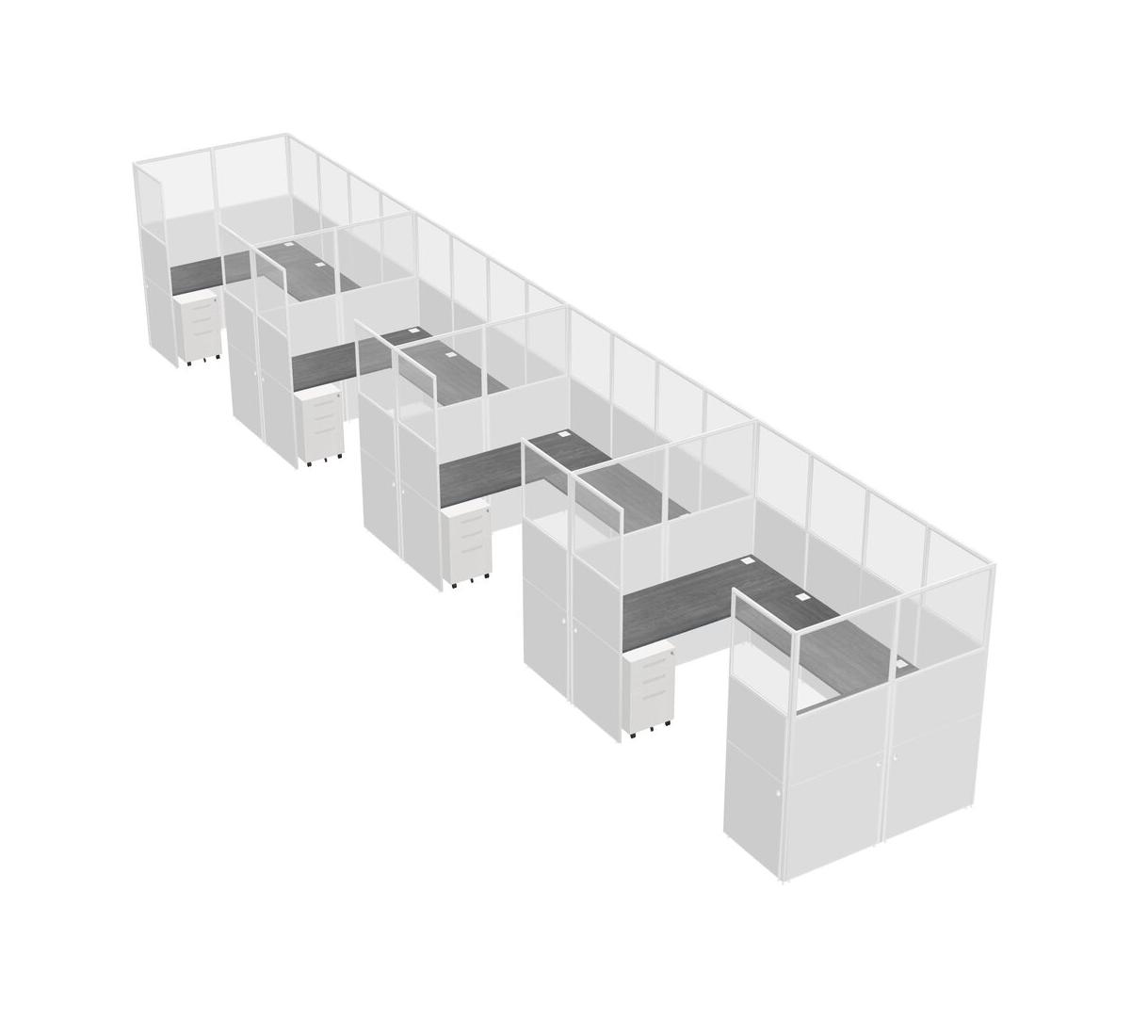 Système De Panneaux En U Gris Pour 4 Personnes + Tiroirs Mobiles En Métal Pour 4 Utilisateur(s)