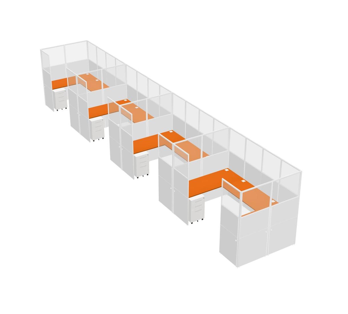Système De Panneaux En U Orange Pour 4 Personnes + Tiroirs Mobiles En Métal Pour 4 Utilisateur(s)