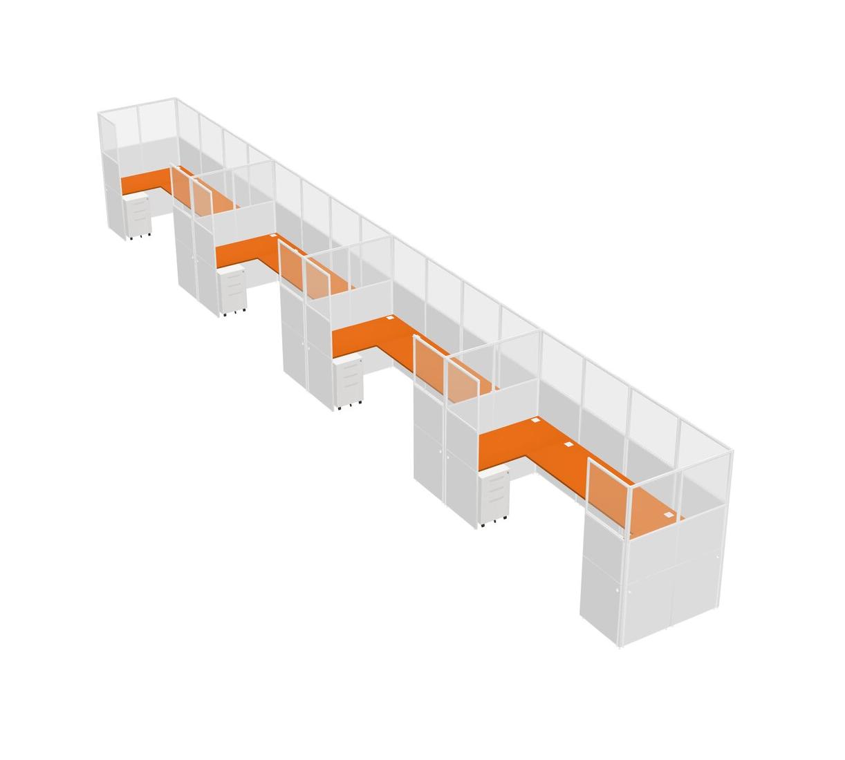 Système De Panneaux En U Orange Pour 4 Personnes + Tiroirs Mobiles En Métal Pour 4 Utilisateur(s)