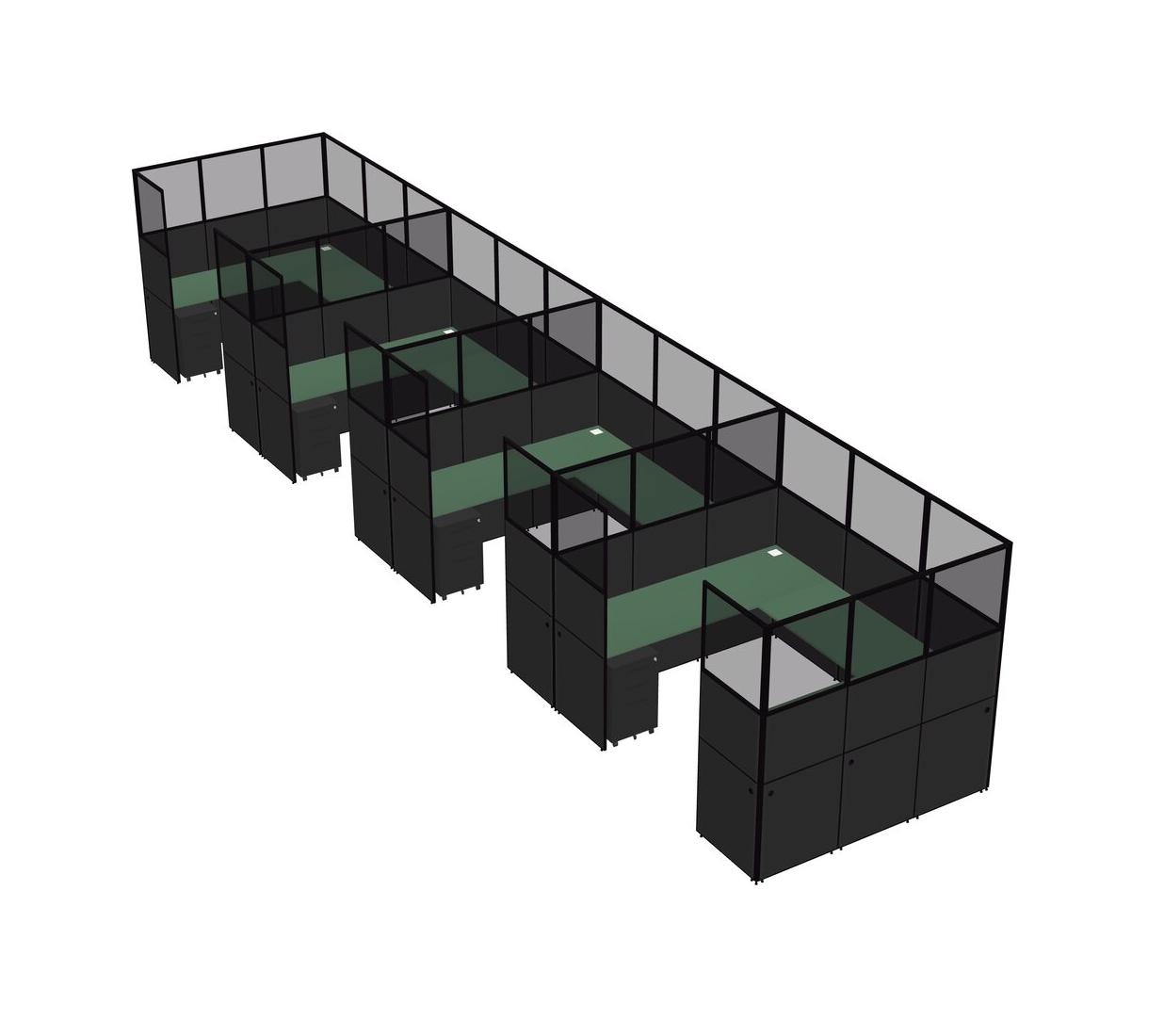 Système De Panneaux En U Vert Pour 4 Personnes + Tiroirs Mobiles En Métal Pour 4 Utilisateur(s)