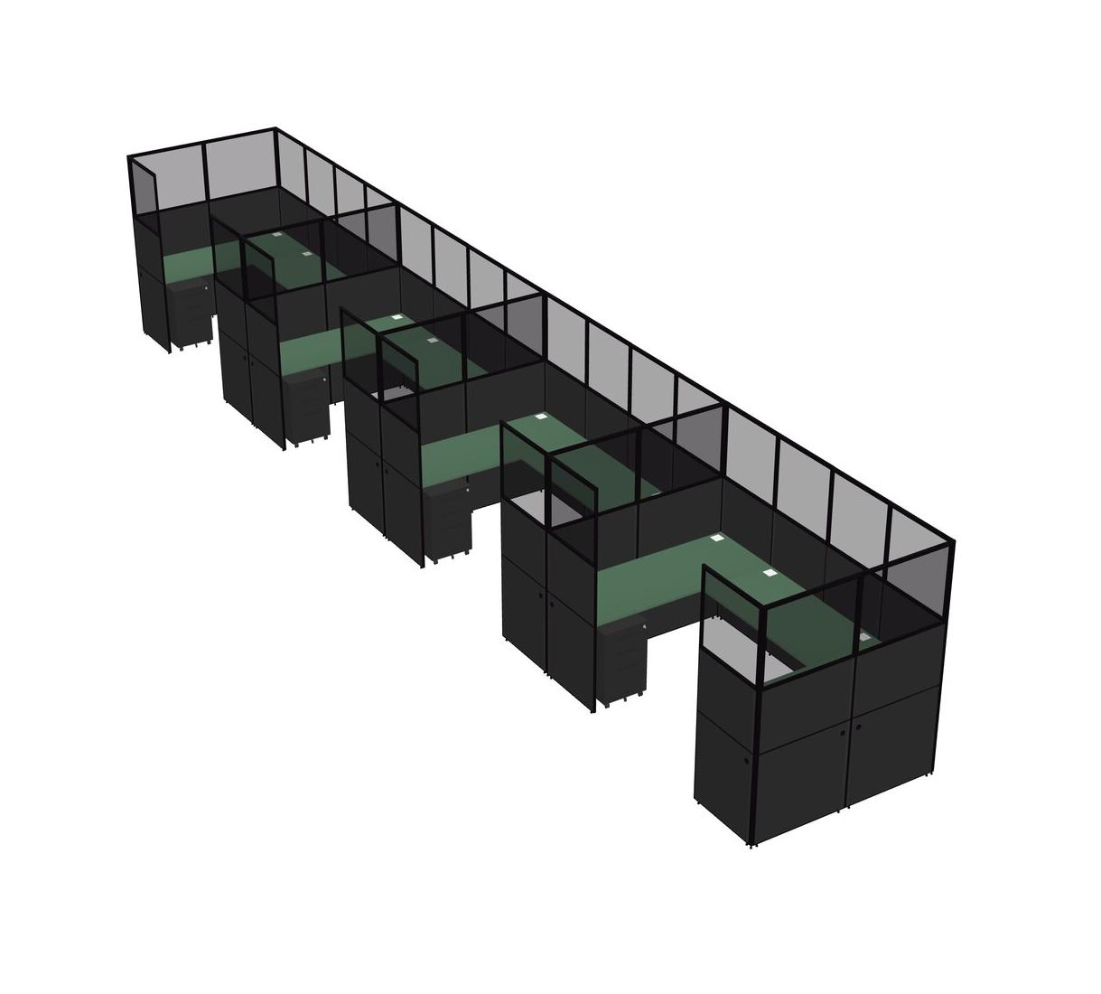 Système De Panneaux En U Vert Pour 4 Personnes + Tiroirs Mobiles En Métal Pour 4 Utilisateur(s)
