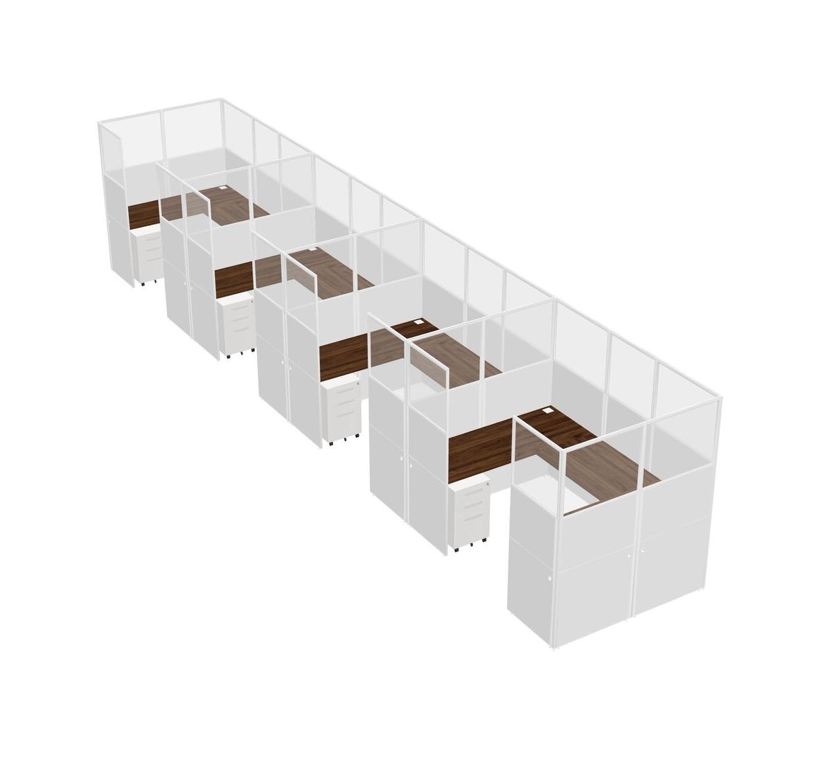 Système De Panneaux En U En Noyer Columbia Pour 4 Personnes + Tiroirs Mobiles En Métal Pour 4 Utilisateur(s)